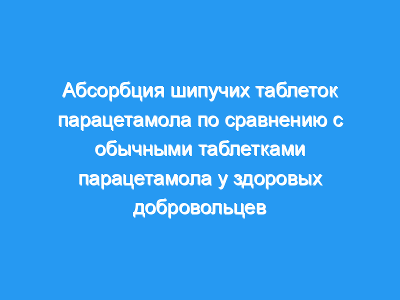 Целью этого исследования было сравнить скорость всасывания между обычными таблетками парацетамола и шипучими таблетками парацетамола. Двадцать здоровых добровольцев приняли участие в открытом рандомизированном перекрестном исследовании и получили дозу 1000 мг либо обычных таблеток парацетамола (2 таблетки Panodil по 500 мг, SmithKline Beecham), либо шипучих таблеток парацетамола (2 таблетки Pinex Brusetablett по 500 мг, Alpharma AS) с 3-недельный период вымывания между ними. Образцы крови отбирали в течение 3 ч. Регистрировали максимальную концентрацию в сыворотке (Cmax) и время достижения максимальной концентрации в сыворотке (tmax) и рассчитывали площадь под кривой зависимости концентрации от времени (AUC).