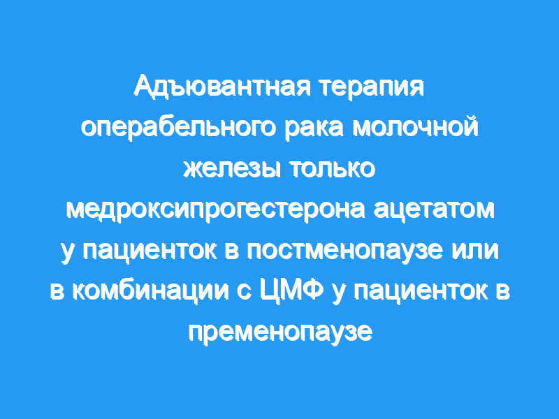 Настоящая статья посвящена двум многоцентровым исследованиям адъювантной терапии медроксипрогестерона ацетатом (MAP) при операбельном N+ раке молочной железы.