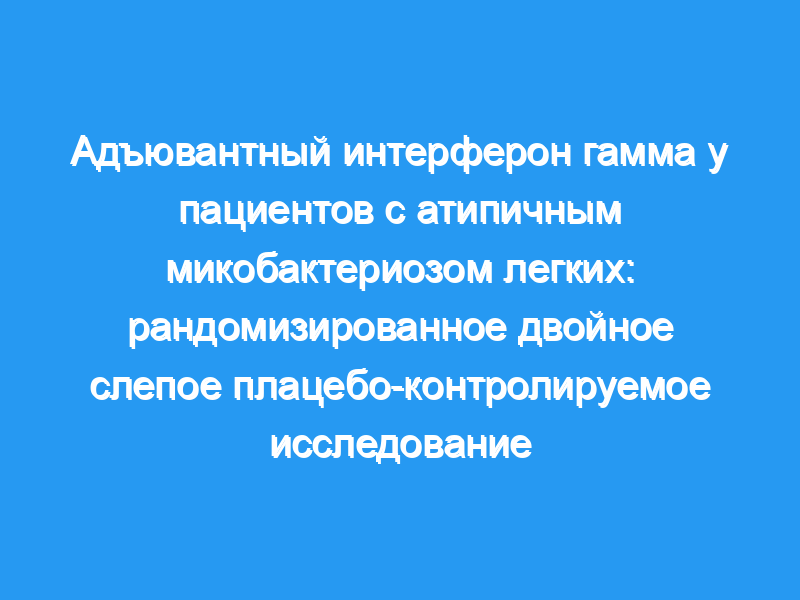 В двух больницах было проведено рандомизированное двойное слепое плацебо-контролируемое клиническое исследование для оценки эффекта гамма-интерферона (ИФН) в качестве иммуноадъюванта к химиотерапии у пациентов с атипичным микобактериальным заболеванием легких. Пациенты получали плацебо или 1 × 106 МЕ рекомбинантного человеческого ИФН гамма внутримышечно, ежедневно в течение одного месяца, а затем три раза в неделю до 6 месяцев в качестве дополнения к ежедневному пероральному приему азитромицина, ципрофлоксацина, этамбутола и рифампицина. Во время лечения и через год после него был проведен сбор образцов мокроты для непосредственного наблюдения и посева мазка, а также клиническая оценка и рентгенография грудной клетки. Определение цитокинов и окислительного стресса проводили в периферической крови до и после лечения.