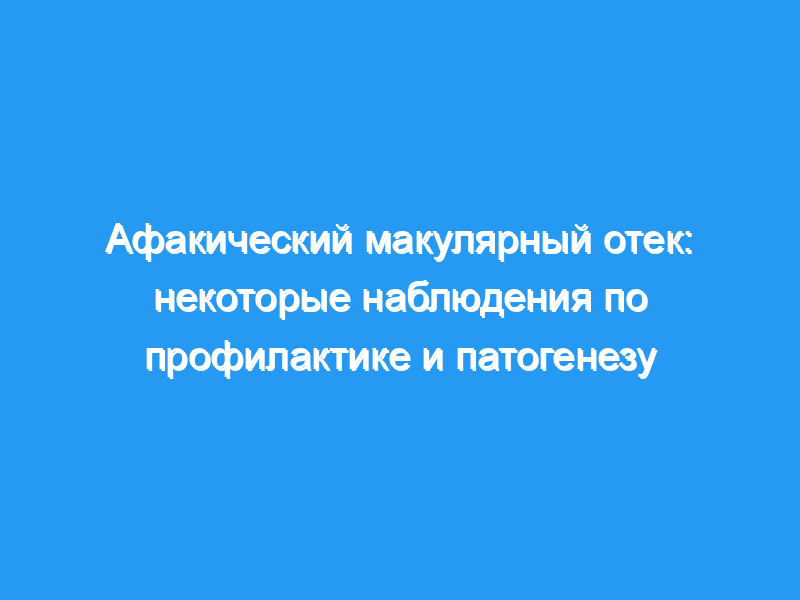Было проведено проспективное контролируемое исследование местных 0,1% капель дексаметазона с целью определения его эффективности в профилактике афакического макулярного отека.