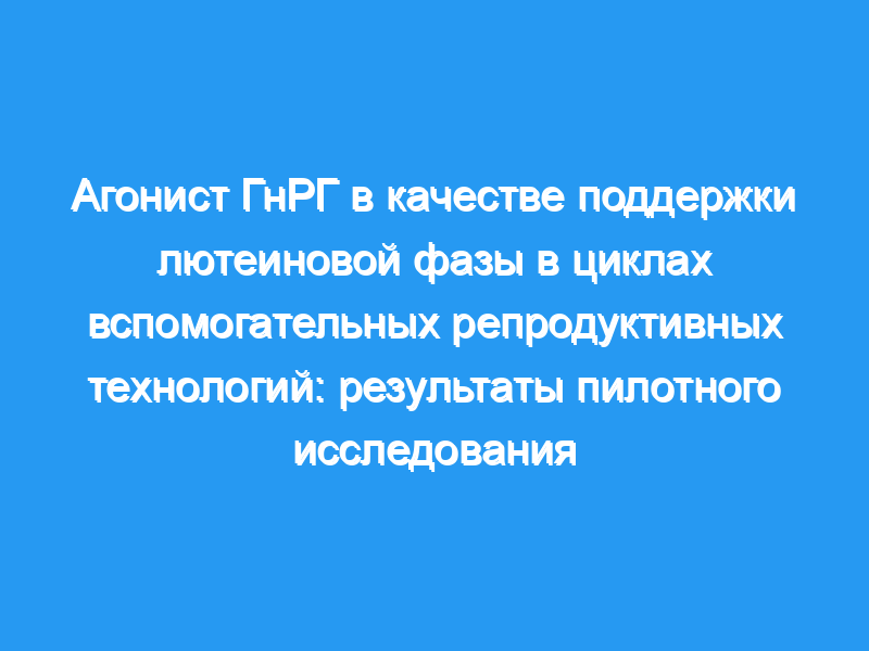 Целью исследования было выяснить, может ли интраназальное (внутривенное) введение агониста ГнРГ обеспечить лютеиновую поддержку у пациентов с ЭКО/ИКСИ.