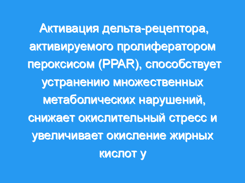 Агонист PPARdelta GW501516 устраняет множественные нарушения, связанные с метаболическим синдромом, без усиления окислительного стресса. Этот эффект, вероятно, вызван повышенным окислением жира в скелетных мышцах.