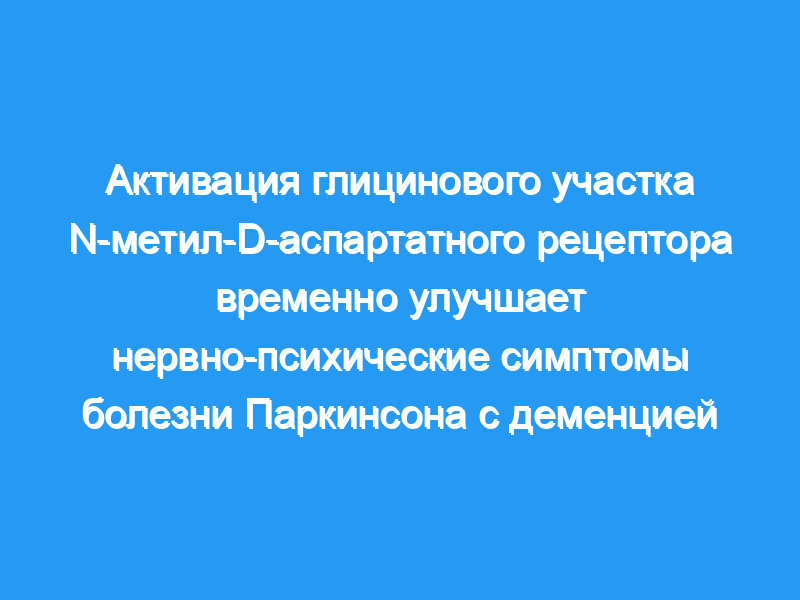 Ранее мы обнаружили, что саркозин, ингибитор глицинового транспортера I, может улучшить психиатрические симптомы шизофрении. В этом исследовании мы стремились выяснить, может ли это средство также облегчить нервно-психические симптомы у пациентов с болезнью Паркинсона (БП) с деменцией.