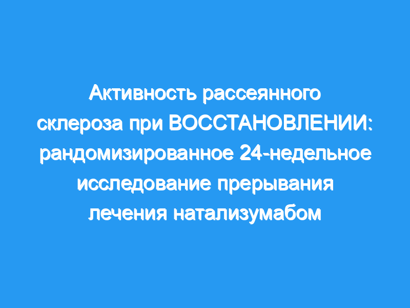 МРТ и клиническая активность заболевания повторялись у некоторых пациентов во время прекращения приема натализумаба, несмотря на использование других методов лечения. Классификация доказательств: Это исследование предоставляет доказательства класса II, что для пациентов с рассеянным склерозом, принимающих натализумаб, у которых нет рецидивов в течение 1 года, прекращение приема натализумаба увеличивает риск рецидива рассеянного склероза или активности МРТ-заболевания по сравнению с продолжением приема натализумаба.