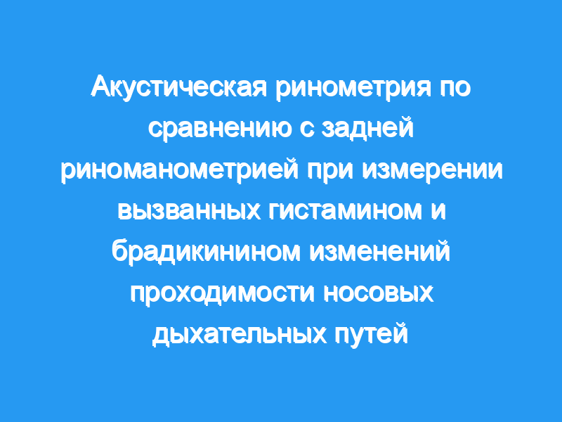 В этой статье мы сравниваем акустическую ринометрию с активной задней риноманометрией.
