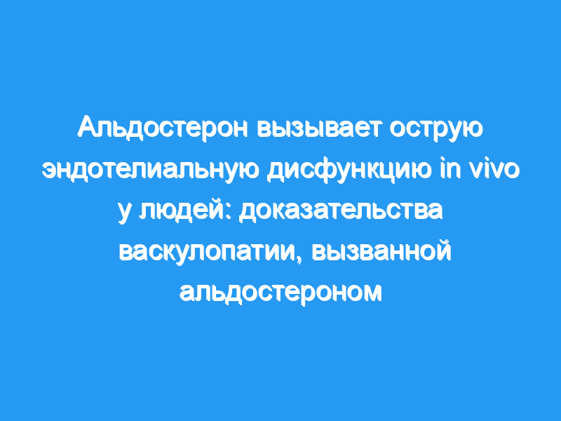 Таким образом острое кратковременное системное введение альдостерона приводит к дисфункции эндотелиальных сосудов у нормальных мужчин, что свидетельствует о васкулопатии, вызванной альдостероном, что может быть особенно актуально не только при сердечной недостаточности, но и у пациентов с артериальной гипертензией с высоким соотношением альдостерон/ренин.