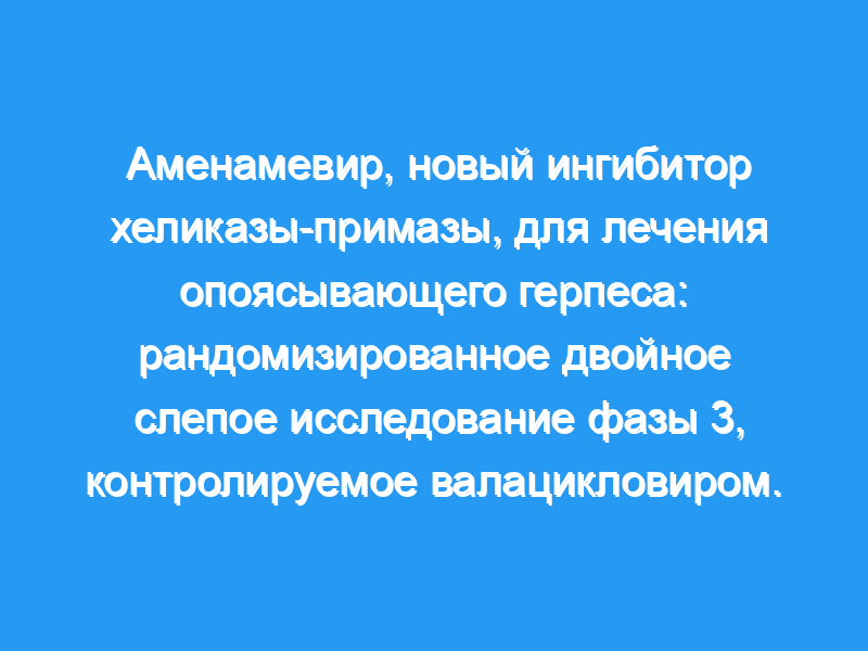 Это исследование является первым рандомизированным, двойным слепым, контролируемым валацикловиром исследованием фазы 3 для оценки эффективности и безопасность применения аменамевира у японских пациентов с опоясывающим герпесом при лечении в течение 72 ч после начала рас.