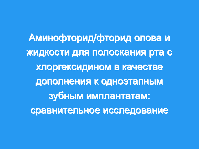 Растущая популярность непогружаемых зубных имплантатов в последние годы требует большего внимания к борьбе с микробным налетом. Хлоргексидин (CHX), наиболее часто используемый ополаскиватель для полости рта в хирургии имплантации, иногда ассоциируется с окрашиванием зубов и изменением вкусового восприятия. Было показано, что жидкость для полоскания рта с фторидом амина/фторидом олова (AmF / SnF2) обладает противоинфекционными свойствами, однако она не была протестирована в качестве дополнительного противоинфекционного средства при использовании непогруженных зубных имплантатов. Целью этого исследования было сравнить жидкости для полоскания рта AmF/SnF2 и CHX в качестве дополнения к одноэтапным зубным имплантатам.