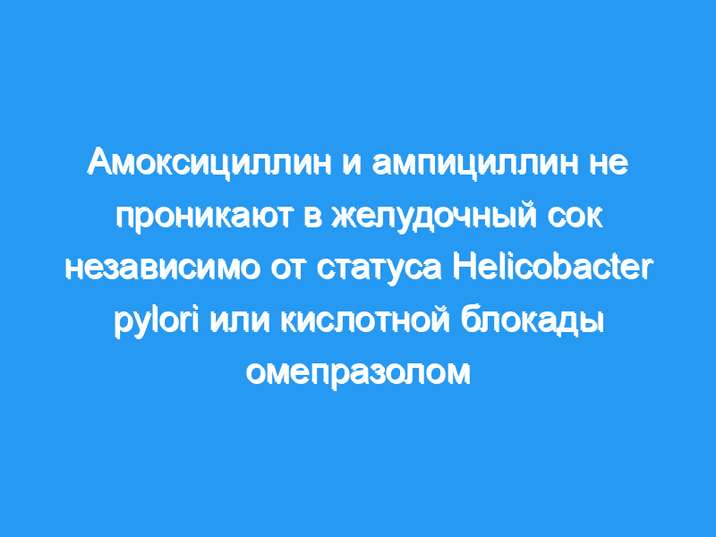 Ни предварительное лечение омепразолом, ни инфекция H. pylori не влияли на биодоступность амоксициллина или ампициллина в плазме крови, что оценивалось по AUC0-2 ч. Ни ампициллин, ни амоксициллин не были обнаружены в слюне или желудочном соке ни на одном этапе исследования.