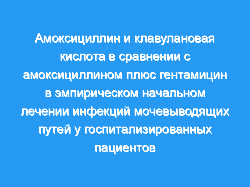 Мы сравнили фиксированную комбинацию амоксициллин плюс клавулановая кислота с комбинацией амоксициллин плюс гентамицин в эмпирическом начальном лечении тяжелой инфекции мочевыводящих путей.