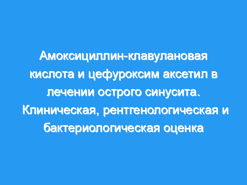 Цефуроксим аксетил (CAE), перорально абсорбируемый продукт цефуроксима, и амоксициллин/клавуланат (AAC) были оценены на предмет их эффективности и безопасности при лечении острого синусита.
