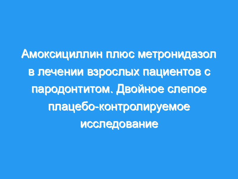 Предпосылки, цели: Целью этого двойного слепого параллельного исследования была оценка дополнительных эффектов системного применения амоксициллина и метронидазола в группе взрослых пациентов с пародонтитом, которым также проводилась наддесневая и поддесневая санация.