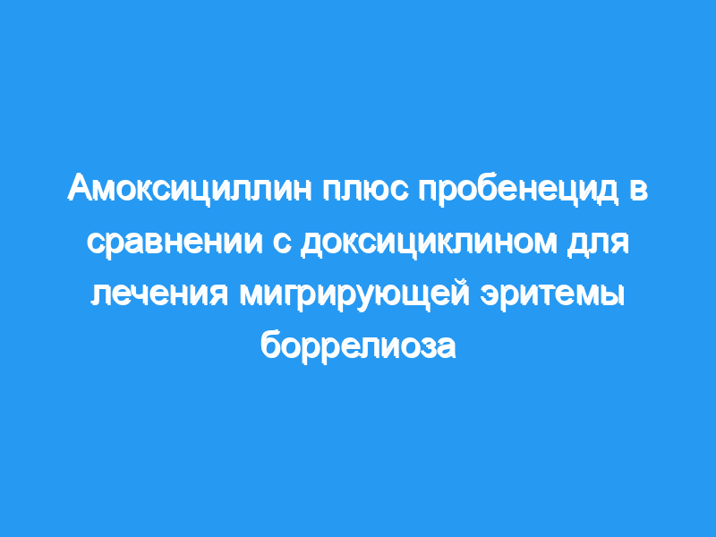 72 взрослых с мигрирующей эритемой (ранний боррелиоз Лайма) были включены в рандомизированное проспективное исследование, в котором сравнивали амоксициллин 500 мг плюс пробенецид 500 мг три раза в день с доксициклином 100 мг два раза в день в течение 21 дня.