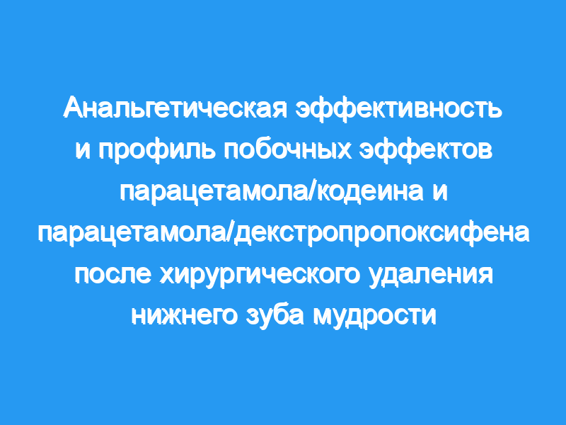 Уменьшение боли после первой дозы составило 64% в группе, получавшей парацетамол/кодеин, по сравнению с группой, получавшей 53% в группе, получавшей парацетамол/декстропропоксифен, а средняя продолжительность действия первой дозы составила 6,6 и 5,8 ч соответственно.