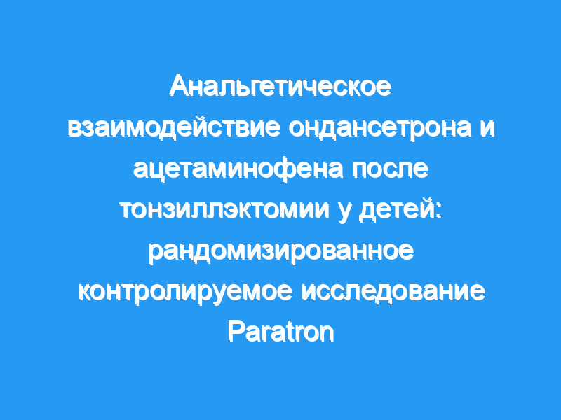 Paratron — это проспективное рандомизированное контролируемое двойное слепое параллельное групповое исследование. Все дети в возрасте 2-7 лет (n = 69), которым была запланирована тонзиллэктомия + аденоидэктомия, получали интраоперационный ацетаминофен с ондансетроном или дроперидолом. Показатели боли [Шкала боли Детской больницы Восточного Онтарио (CHEOPS)], потребление морфина и частота послеоперационной тошноты и рвоты (PONV) измерялись в течение 24 ч после операции.
