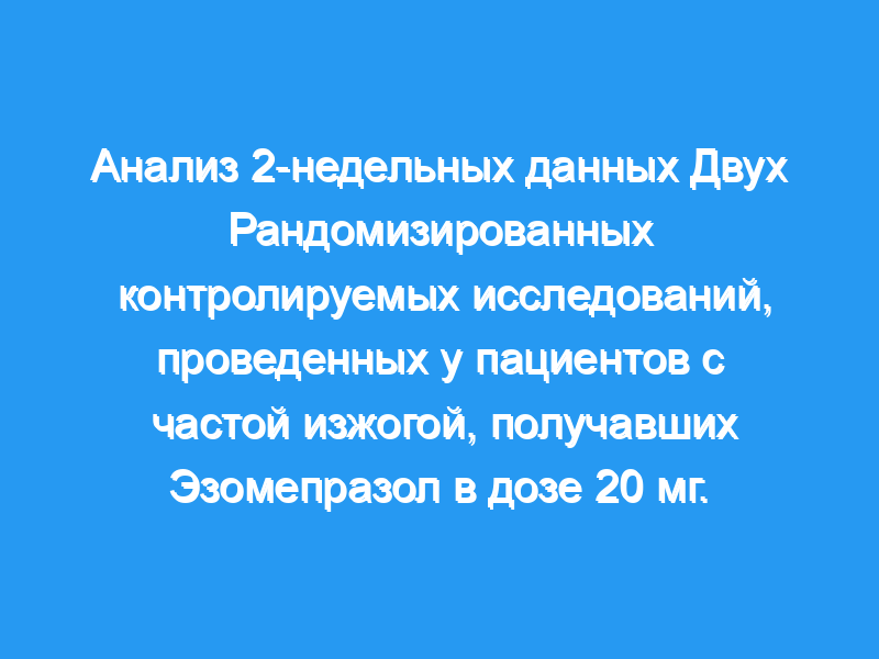 В этих вторичных анализах использовались данные 2 аналогичных исследований с участием пациентов, испытывающих частую изжогу, для оценки эффективности эзомепразола в дозе 20 мг один раз в день в течение 2 недель, что отражает утвержденную безрецептурную дозировку и продолжительность.