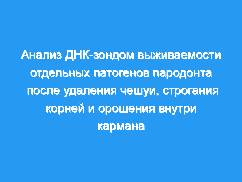 В этом клиническом исследовании оценивалась выживаемость Actinobacillus actinomycetemcomitans, Porphyromonas gingivalis и Prevotella intermedia в пародонтальных карманах после удаления чешуи и выравнивания корней и орошения внутри кармана антимикробными препаратами у пациентов с умеренным и тяжелым пародонтитом.
