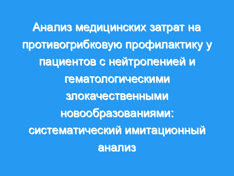 Цели работы: Мы оценили медицинские затраты на различные противогрибковые средства для профилактики инвазивных грибковых инфекций у пациентов с нейтропенией в Японии с помощью имитационной модели затрат, разработанной для исследования. Пациенты и методы: Мы использовали вероятности неудачной профилактики, возможные случаи эмпирической терапии, вероятные доли инфекций, вызванных видами грибов, среди пациентов, не прошедших профилактическую терапию, и частоту нежелательных явлений, вызванных любой причиной, на основе систематического анализа ранее зарегистрированных рандомизированных исследований, выявленных с помощью компьютерного поиска в базе данных PubMed. Противогрибковые средства были ограничены пероральным флуконазолом, пероральным итраконазолом, микафунгином и липосомальным амфотерицином В. Диапазон ожидаемых медицинских расходов был смоделирован как анализ чувствительности с использованием 95% доверительного интервала среднего значения.