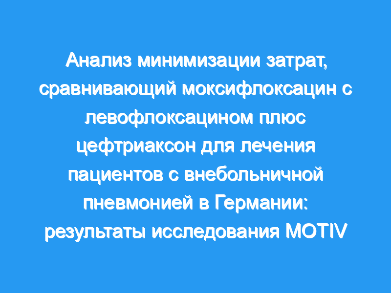 В этом исследовании представлен анализ минимизации затрат на моксифлоксацин по сравнению с комбинированным лечением левофлоксацином и цефтриаксоном у пациентов, госпитализированных с внебольничной пневмонией (ВП) в Германии. План и методы исследования: В исследовании MOTIV 738 взрослых пациентов с ВП, нуждающихся в госпитализации и начальной парентеральной антибактериальной терапии, были рандомизированы для последовательной внутривенной/пероральной терапии либо моксифлоксацином (n = 368), либо левофлоксацином и цефтриаксоном (n = 365). Первичной конечной точкой эффективности была доля пациентов, продемонстрировавших клиническое улучшение через 5-7 дней после завершения исследуемого лечения. Анализ подгрупп включал пациентов с тяжелой ВП в соответствии с индексом тяжести пневмонии (PSI) IV и V классов риска, микробиологически подтвержденной инфекцией, хронической обструктивной болезнью легких в анамнезе и сердечно-сосудистыми заболеваниями в анамнезе. Анализ включал в себя стоимость исследуемых лекарств, пребывания в больнице, повторной госпитализации и стационарных процедур и диагностики. Частота событий в исследовании была умножена на удельные затраты в Германии для оценки расходов на одного пациента. Анализ проводился с точки зрения больницы. Анализ чувствительности исследовал влияние затрат с точки зрения страховщика.