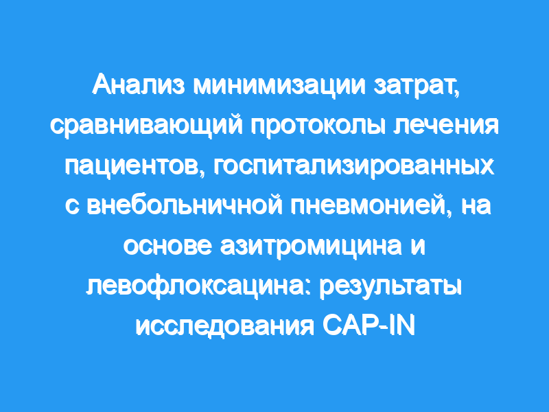 Было проведено рандомизированное исследование, в котором сравнивались азитромицин и левофлоксацин для лечения пациентов средней и тяжелой степени тяжести, госпитализированных с внебольничной пневмонией. Это анализ минимизации затрат, сравнивающий эти схемы.