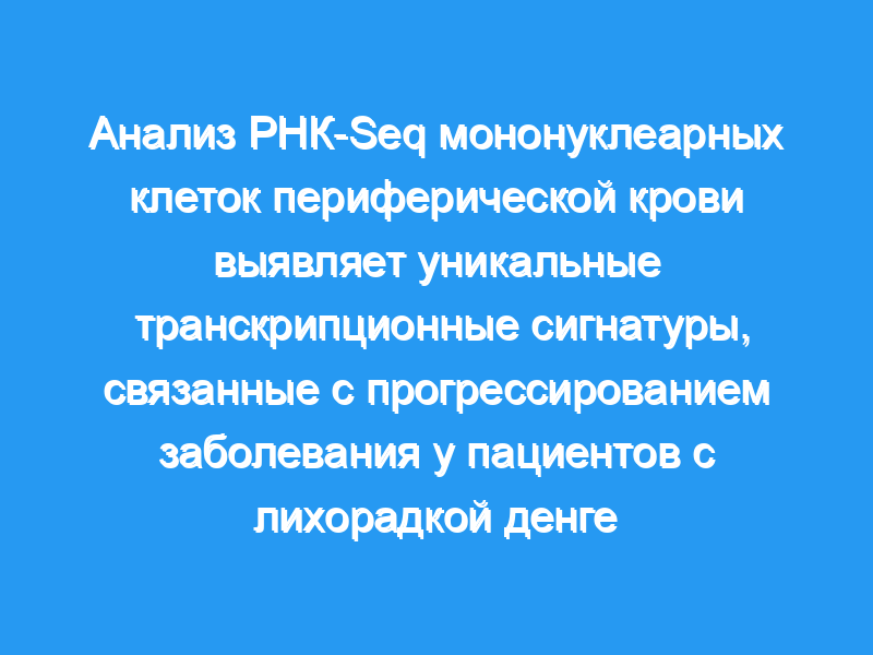 Чтобы идентифицировать транскрипционные сигнатуры, связанные с прогрессированием болезни денге, мы провели высокопроизводительное секвенирование РНК, выделенной из мононуклеарных клеток периферической крови (PBMCs) пациентов с лихорадкой денге различной степени тяжести, и сравнили с таковой у пациентов с другими лихорадочными заболеваниями (OFIs) или здоровый контроль.