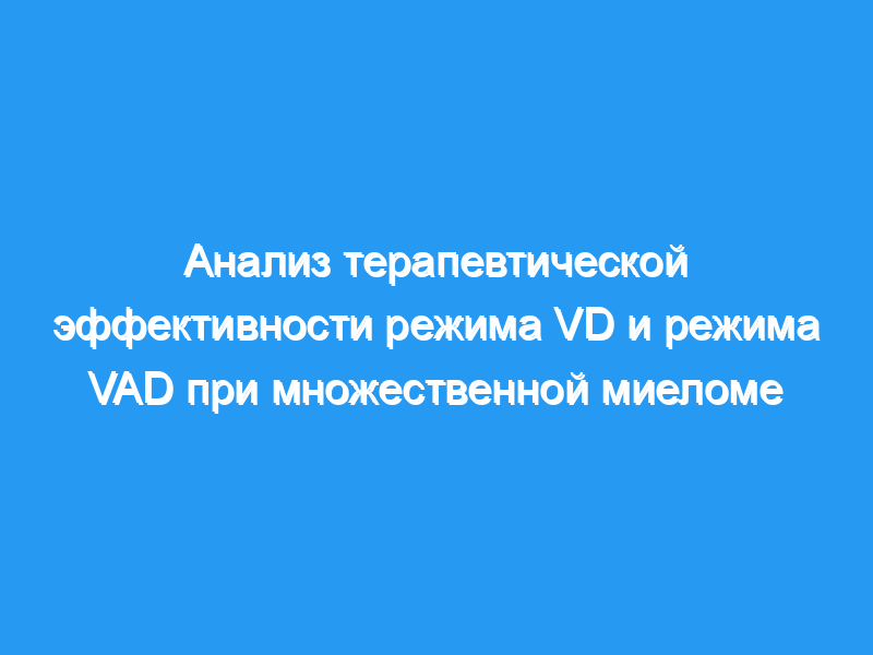 Целью этого исследования было изучение терапевтической эффективности и безопасности режима VD и режима VAD для пациентов с множественной миеломой.