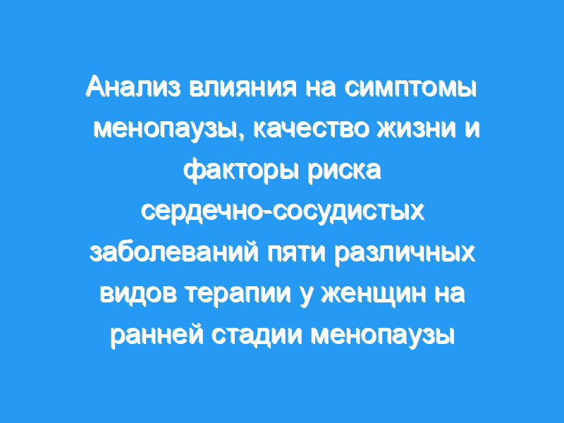 Изучить влияние пяти различных видов терапии у женщин на ранней стадии менопаузы на симптомы менопаузы, качество жизни и факторы риска сердечно-сосудистых заболеваний.