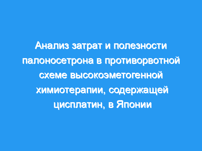 Противорвотный триплетный режим антагониста рецепторов 5-гидротриптамина-3, дексаметазона и апрепитанта является стандартной профилактикой высокоэметогенной химиотерапии (HEC). Рандомизированное исследование III фазы, сравнивающее палоносетрон (PALO) с гранисетроном (GRA) в тройном противорвотном режиме (ТРОЙНОЕ исследование), показало превосходство PALO над GRA в отношении рвоты замедленной фазы у пациентов, получающих ГЭК на основе цисплатина. Однако оценки экономической эффективности, включая качество жизни, не проводились. Настоящее исследование представляло собой анализ затрат и полезности PALO в рамках японской системы медицинского страхования.