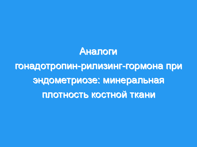 Аналоги гонадотропин-рилизинг-гормона (GnRHa), как правило, хорошо переносятся и эффективны в облегчении симптомов эндометриоза (Prentice 2003). К сожалению, низкий уровень эстрогена, который они вызывают, связан с побочными эффектами, включая ускорение потери минеральной плотности костной ткани (МПКТ).