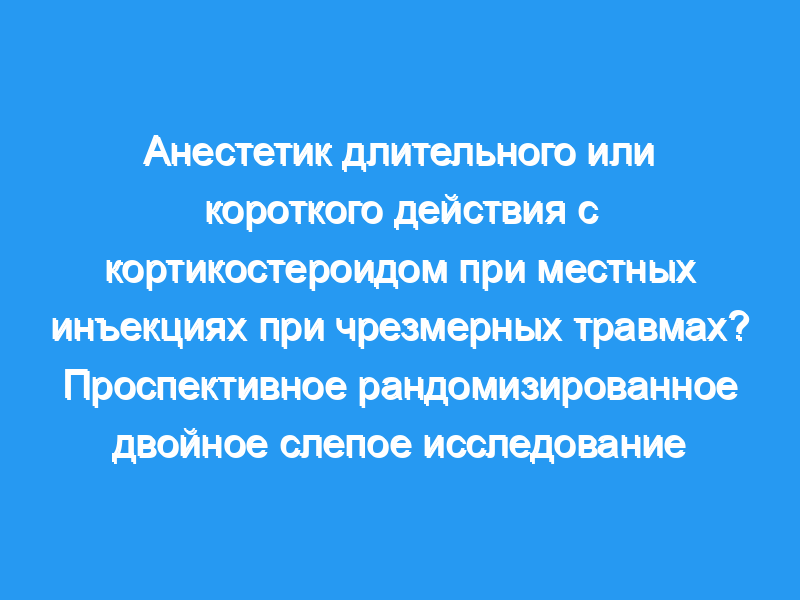 Было проведено проспективное рандомизированное двойное слепое исследование 56 пациентов с чрезмерной спортивной травмой с целью сравнения эффекта анестетика длительного действия (бупивакаин) с анестетиком короткого действия (лидокаин) при местной инъекции кортикостероидов.