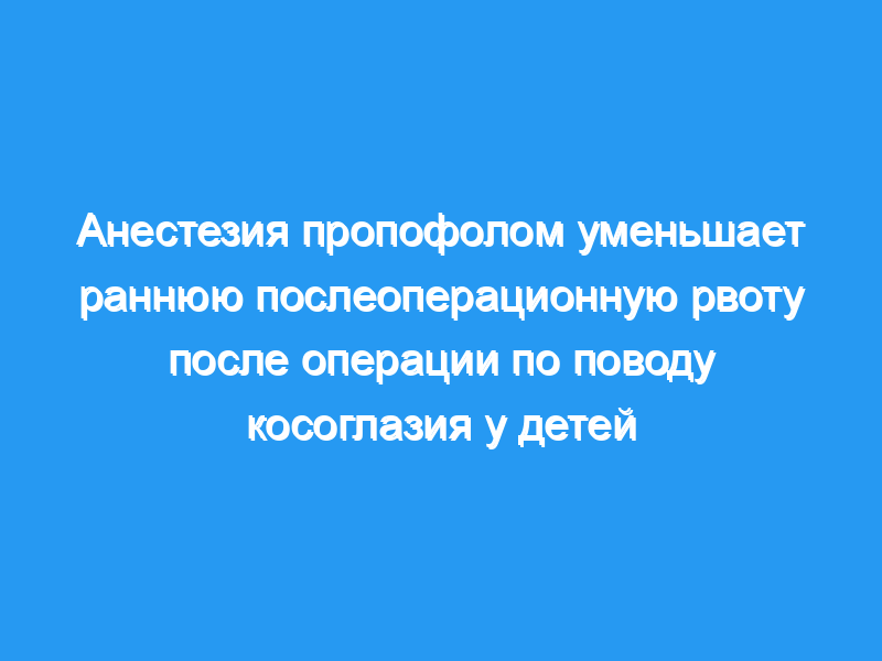 Анестезия пропофолом может уменьшить послеоперационную рвоту.