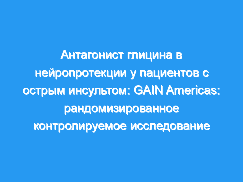 Авторы исследования: R L Sacco, J T DeRosa, E C Haley Jr, B Levin, P Ordronneau, S J Phillips, T Rundek, R G Snipes, J L Thompson, Glycine Antagonist in Neuroprotection Americas Investigators