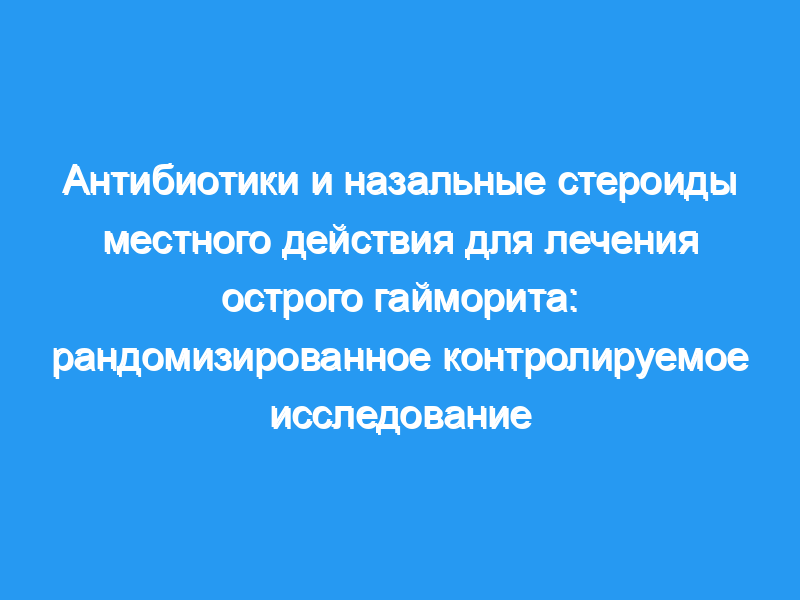Определить эффективность амоксициллина и местного будесонида при остром гайморите. Дизайн, условия и пациенты: Двойное слепое рандомизированное плацебо-контролируемое факторное исследование с участием 240 взрослых (в возрасте >, or =16 лет) с острым нерекуррентным синуситом (had >, or =2 диагностических критерия: гнойная ринорея с односторонним преобладанием, местная боль с односторонним преобладанием, гнойный двусторонняя ринорея, наличие гноя в полости носа) в 58 семейных клиниках (74 семейных врача) в период с ноября 2001 по ноябрь 2005 года. Пациенты были рандомизированы в 1 из 4 групп лечения: антибиотик и назальный стероид, плацебо-антибиотик и назальный стероид, антибиотик и плацебо-назальный стероид, плацебо-антибиотик и плацебо-назальный стероид. Вмешательство: Доза 500 мг амоксициллина 3 раза в день в течение 7 дней и 200 мл будесонида в каждую ноздрю один раз в день в течение 10 дней. Основные показатели результатов: Доля клинически излеченных на 10-й день с использованием дневников симптомов пациентов, а также продолжительность и тяжесть симптомов. Доля пациентов с симптомами, длящимися 10 или более дней, составила 29 из 100 (29%) для амоксициллина против 36 из 107 (33,6%) для отсутствия амоксициллина (скорректированное отношение шансов 0,99, 95% доверительный интервал 0,57-1,73). Доля пациентов с симптомами, длящимися 10 или более дней, составила 32 из 102 (31,4%) при местном применении будесонида против 33 из 105 (31,4%) при отсутствии будесонида (скорректированное отношение шансов 0,93, 95% доверительный интервал 0,54-1,62). Вторичный анализ показал, что назальные стероиды были значительно более эффективны у пациентов с менее тяжелыми симптомами на исходном этапе.