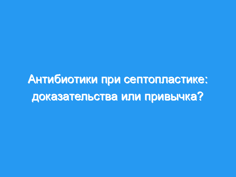 Антибиотикопрофилактика хирургических вмешательств является распространенной практикой среди оториноларингологов. Большинство членов Американского общества ринологов регулярно используют антибиотики при септопластике, хотя необходимость этой практики в ринологической хирургии является спорной. Это исследование было разработано для оценки необходимости антибиотикопрофилактики при септопластике в связи с исходом операции и послеоперационными осложнениями.