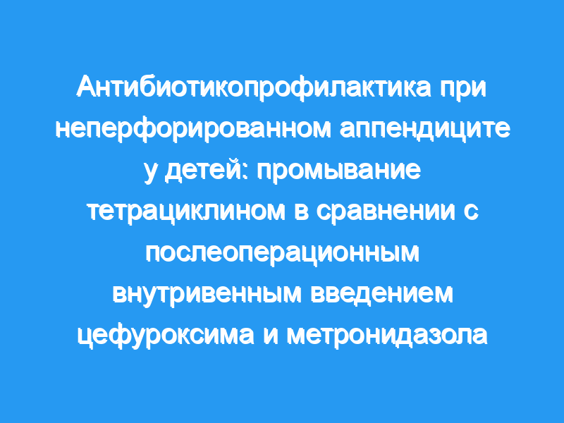 Восемьдесят четыре случая неперфорированного аппендицита у детей были случайным образом распределены для получения либо только окситетрациклинового промывания, либо окситетрациклинового промывания плюс внутривенное введение метронидазола и цефуроксима после операции.