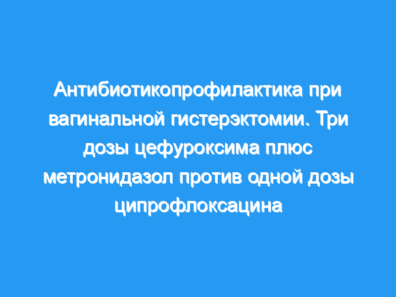 Во втором проспективном рандомизированном исследовании эффективность внутривенного введения ципрофлоксацина (разовая доза 200 мг) сравнивалась с режимом цефуроксим плюс метронидазол.