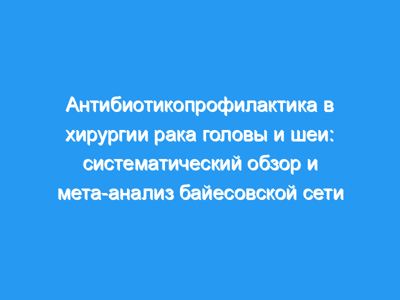 По этой причине мы решили провести байесовский сетевой мета-анализ клинических исследования, оценивающие различные классы антибиотиков для профилактики SSI, таким образом, мы прямо и косвенно сравнили все доступные антибиотики в условиях хирургического лечения онкологических заболеваний головы и шеи.