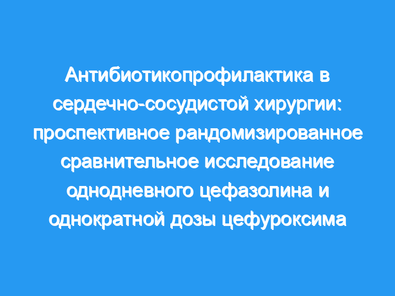 В этом проспективном рандомизированном исследовании однодневная профилактика цефазолином (1 г q 8 ч внутривенно) сравнивали с однократной профилактической дозой цефуроксима (1,5 г). В случаях искусственного кровообращения в затравочный раствор добавляли 0,75 г.