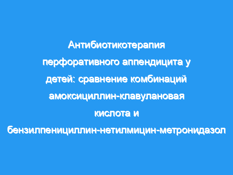 В многоцентровом исследовании мы сравнили клиническую эффективность амоксициллина/клавуланата, используемого в качестве монотерапии, с эффективностью комбинации из трех препаратов, обычно назначаемой в послеоперационном периоде при аппендикулярном перитоните у детей.