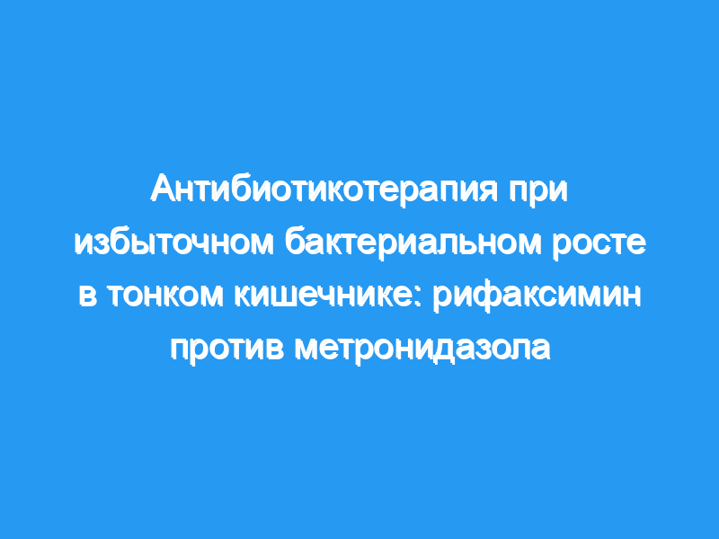 Предпосылки и цели: В настоящее время доступно несколько контролируемых исследований по антибактериальной терапии избыточного роста бактерий в тонком кишечнике. Целью исследования была оценка эффективности, безопасности и переносимости рифаксимина по отношению к метронидазолу для лечения избыточного роста бактерий в тонком кишечнике.