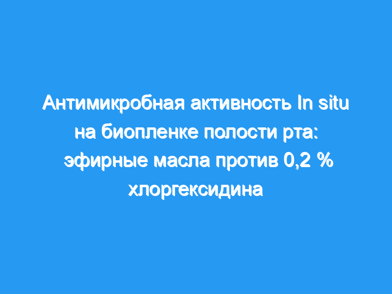 Один M-EO обладает высокой антибактериальной активностью и способностью к проникновению in situ, а также субстантивностью, которая держится не менее 7 ч после нанесения поверх биопленки de novo. Эти результаты были лучше, чем те, которые наблюдались при использовании 0,2 % хлоргексидина в тех же условиях. Клиническая значимость: Однократный M-EO является эффективной мерой против биопленки de novo, представляя собой хорошую альтернативу клоргексидину, например, в качестве предоперационного полоскания, при пародонтальных процедурах или послеоперационном применении.< / p>