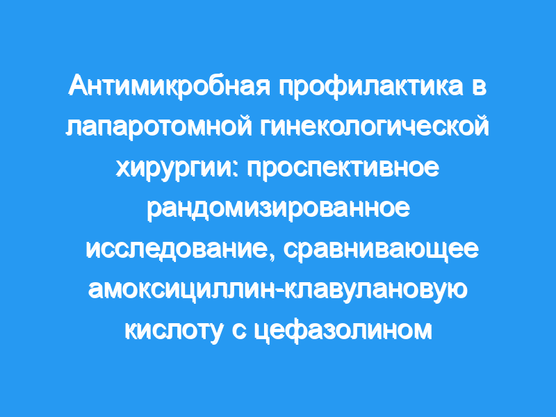 На кафедре акушерства и гинекологии Университета Бари было проведено проспективное рандомизированное исследование для сравнения двух противомикробных схем: амоксициллин-клавулановая кислота и цефазолин в качестве ультракороткой профилактики при лапаротомных гинекологических операциях.