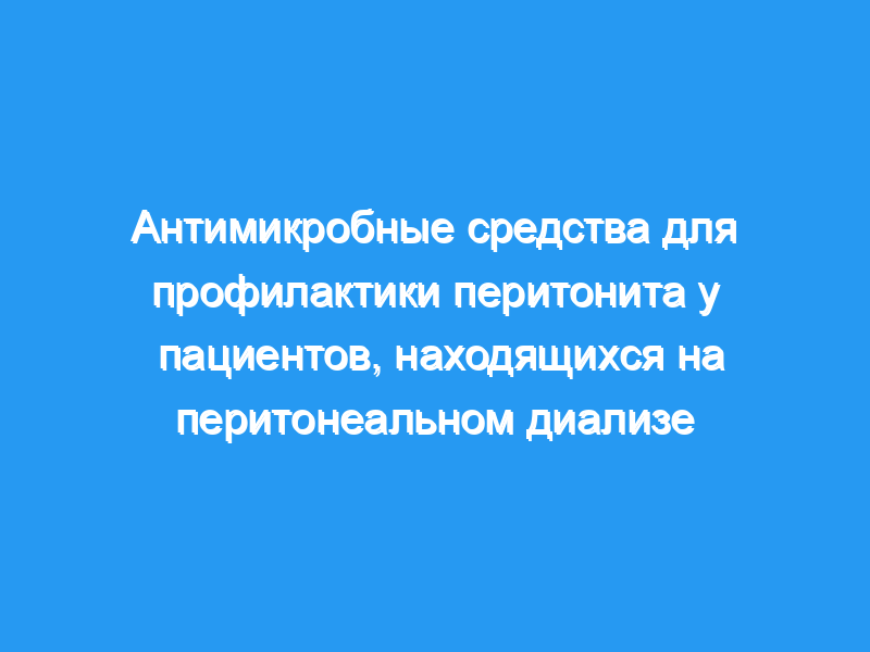 Перитонеальный диализ (ПД) используется в качестве заместительной терапии почечной функции у значительной части (15-50%) пациентов с терминальной стадией заболевания почек (ТПН). Основным ограничением является перитонит, который приводит к отказу техники, госпитализации и увеличению смертности. Для профилактики перитонита используются пероральная, назальная, местная антибиотикопрофилактика, дезинфицирующие средства на месте выхода и другие противомикробные вмешательства.