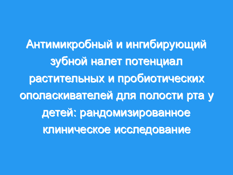 Рандомизированное клиническое исследование было проведено на 60 пациентах в возрасте от 6 до 14 лет, которые были разделены на три группы по 20 человек в каждой группе. Три полоскания полости рта проводили два раза в день в течение 1 недели. Оценка количества бляшек и количества S. viridans была проведена до и после вмешательства, и результаты были статистически проанализированы.