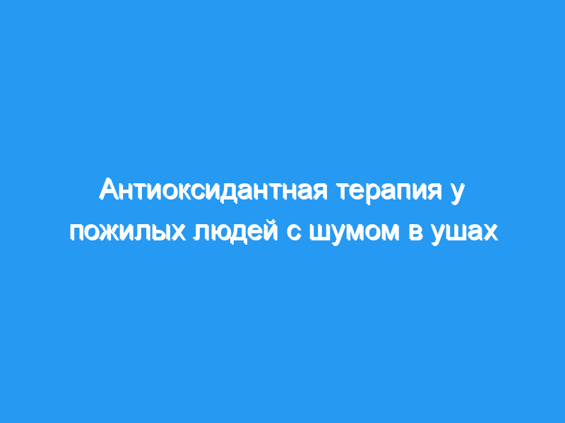 Оценить эффекты антиоксидантной терапии при шуме в ушах у группы пожилых пациентов.
