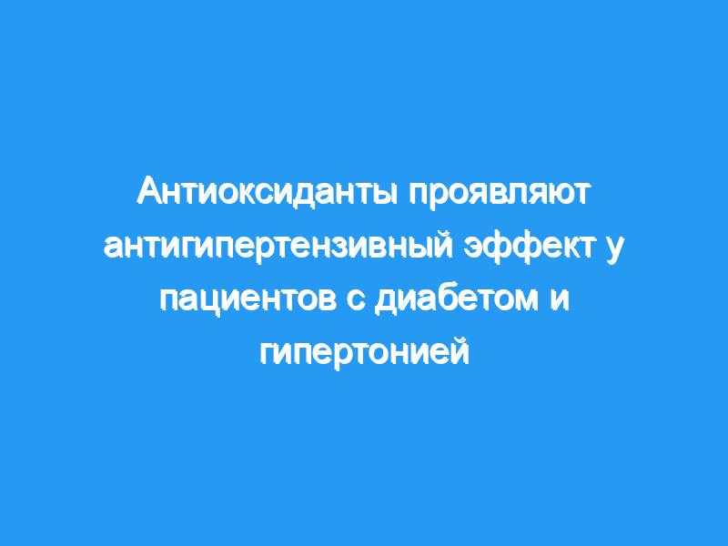 1. В этом исследовании сообщается об остром антигипертензивном эффекте трех антиоксидантных агентов (витамина С, тиопронина и глутатиона) у пациентов с артериальной гипертензией, а также у пациентов с диабетом как с артериальной гипертензией, так и без нее.
