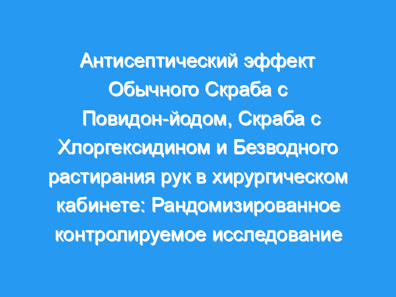 Хирургическое очищение рук с помощью обычного 10%-ного скраба с повидон-йодом, обычного 4%-ного скраба с хлоргексидином или безводного скраба для рук (1%-ный хлоргексидин глюконат и 61%-ный этиловый спирт). РЕЗУЛЬТАТЫ Количество колониеобразующих единиц (КОЕ) собирали с использованием метода отпечатков рук до и после дезинфекции и после хирургического вмешательства.