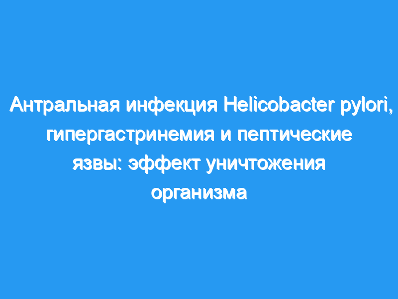 H. pylori был уничтожен у всех пациентов, получавших антибактериальную терапию в течение 4 недель, а концентрация гастрина в сыворотке крови была значительно снижена после эрадикации организма как при язвенной болезни желудка, так и при язвенной болезни двенадцатиперстной кишки. (Язва желудка: 129.3 +/- 47.0 пг/мл до и 63.7 +/- 21.6 пг/мл после лечения. Язвенная болезнь двенадцатиперстной кишки: 108.3 +/- 35.0 пг/мл и 66.5 +/- 21.9 пг/мл соответственно. Итого: 112.7 +/- 38.2 пг/мл против 66.0 +/- 21.6 пг/мл) (p <, 0,01). Напротив, H. pylori-позитивные пациенты, которые не получали антибактериальную терапию, все еще были инфицированы по завершении исследования, и концентрация гастрина в сыворотке крови увеличилась, хотя разница не была существенной. (Язва желудка: 118.4 +/- 51.2 пг/мл против 124.0 +/- 56.5 пг/мл. Язвенная болезнь двенадцатиперстной кишки: 85.4 +/- 35.1 пг/мл против 104.6 +/- 43.5 . Итого: 99.5 +/- 45.3 против 112.9 +/- 48.7 пг/мл.) (p >, 0,05). Ни один из пациентов, которые изначально были H. pylori-отрицательными, не был повторно инфицирован в течение периода исследования, и концентрация их сывороточного гастрина не была изменена. (Язва желудка: 69.8 +/- 38.0 пг/мл. Итого: 63.2 +/- 31.1 пг/мл. Язвенная болезнь двенадцатиперстной кишки: 55.1 +/- 17.6 пг/мл против 55.8 +/- 13.8 пг/мл. Итого: 63.2 +/- 31.1 пг/мл против 63.4 +/- 30.0 пг/мл). Четырех-шестинедельная терапия антагонистами Н2-рецепторов и антацидами не оказывала влияния на концентрацию гастрина в сыворотке крови.