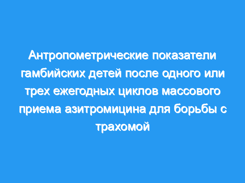 Наши данные не дают доказательств того, что совместное применение МДА с азитромицином улучшило антропометрические показатели детей в Гамбии. Это может свидетельствовать о том, что снижение смертности, связанное с приемом азитромицина МДА, обусловлено механизмом, отличным от улучшения состояния питания.