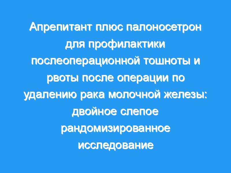 Пациенты с высоким риском (оценка Apfel 3 или 4), которым была назначена односторонняя мастэктомия, были случайным образом распределены в одну из двух групп: пероральный апрепитант (пероральный апрепитант 80 мг, внутривенный дексаметазон 8 мг и палоносетрон 0,075 мг) и пероральное плацебо (пероральное плацебо, внутривенный дексаметазон 4 мг, и палоносетрон 0,075 мг). Пациенты и лица, осуществляющие уход, были слепы к групповым заданиям. Первичные конечные точки эффективности включали частоту возникновения тошноты и рвоты, а вторичные конечные точки включали использование спасательных противорвотных средств в течение 48-часового послеоперационного периода. ClinicalTrials.gov : NCT02431286.